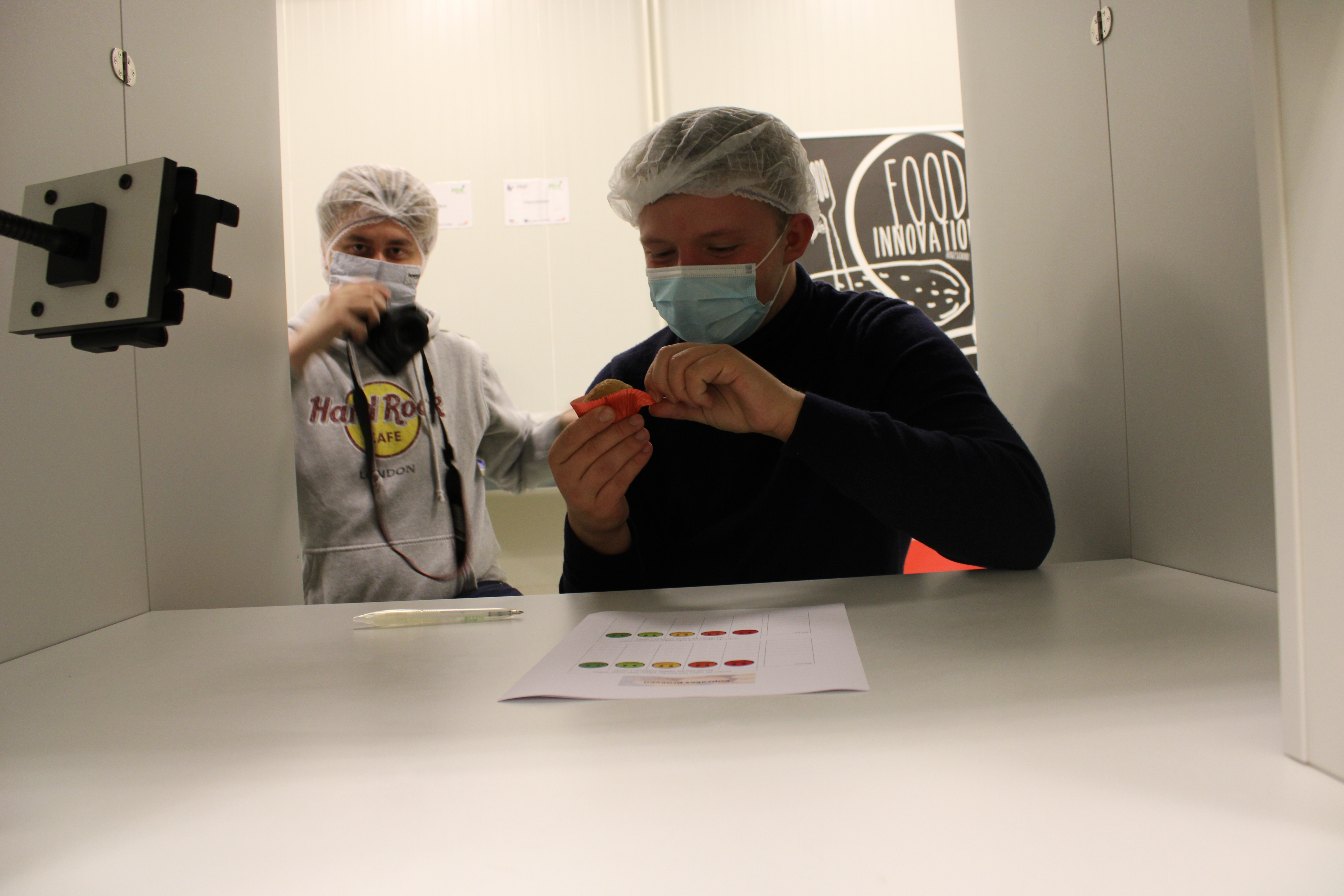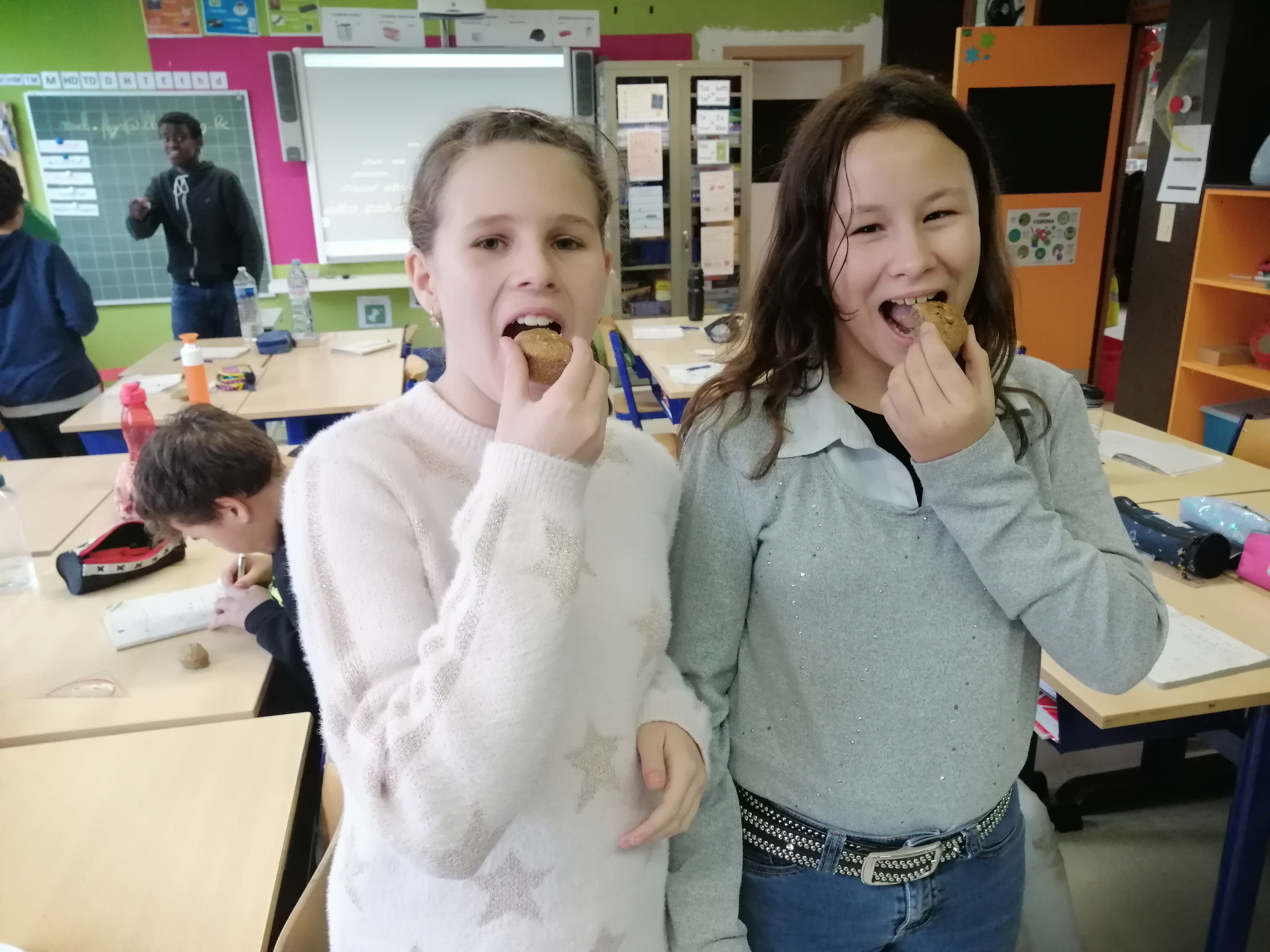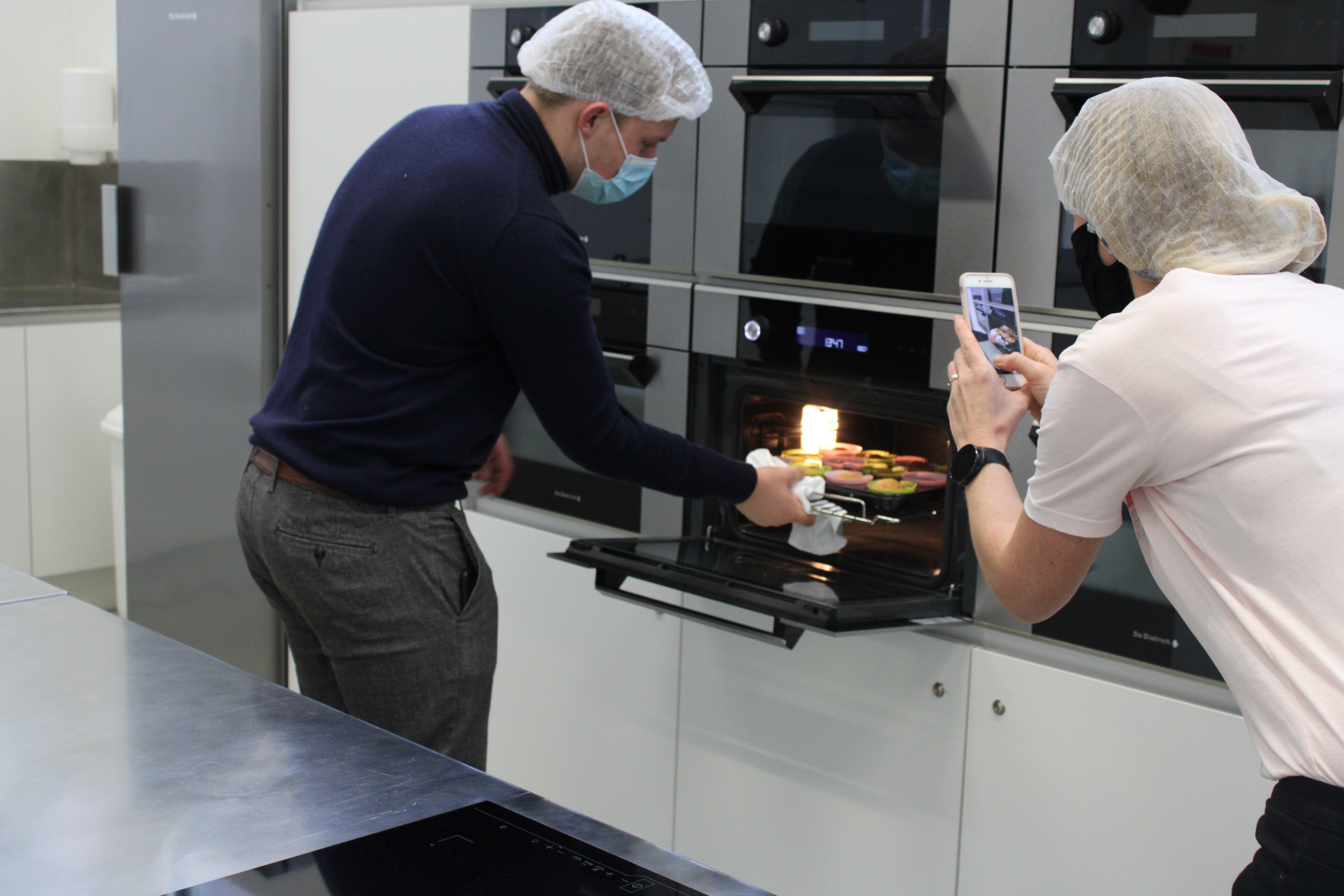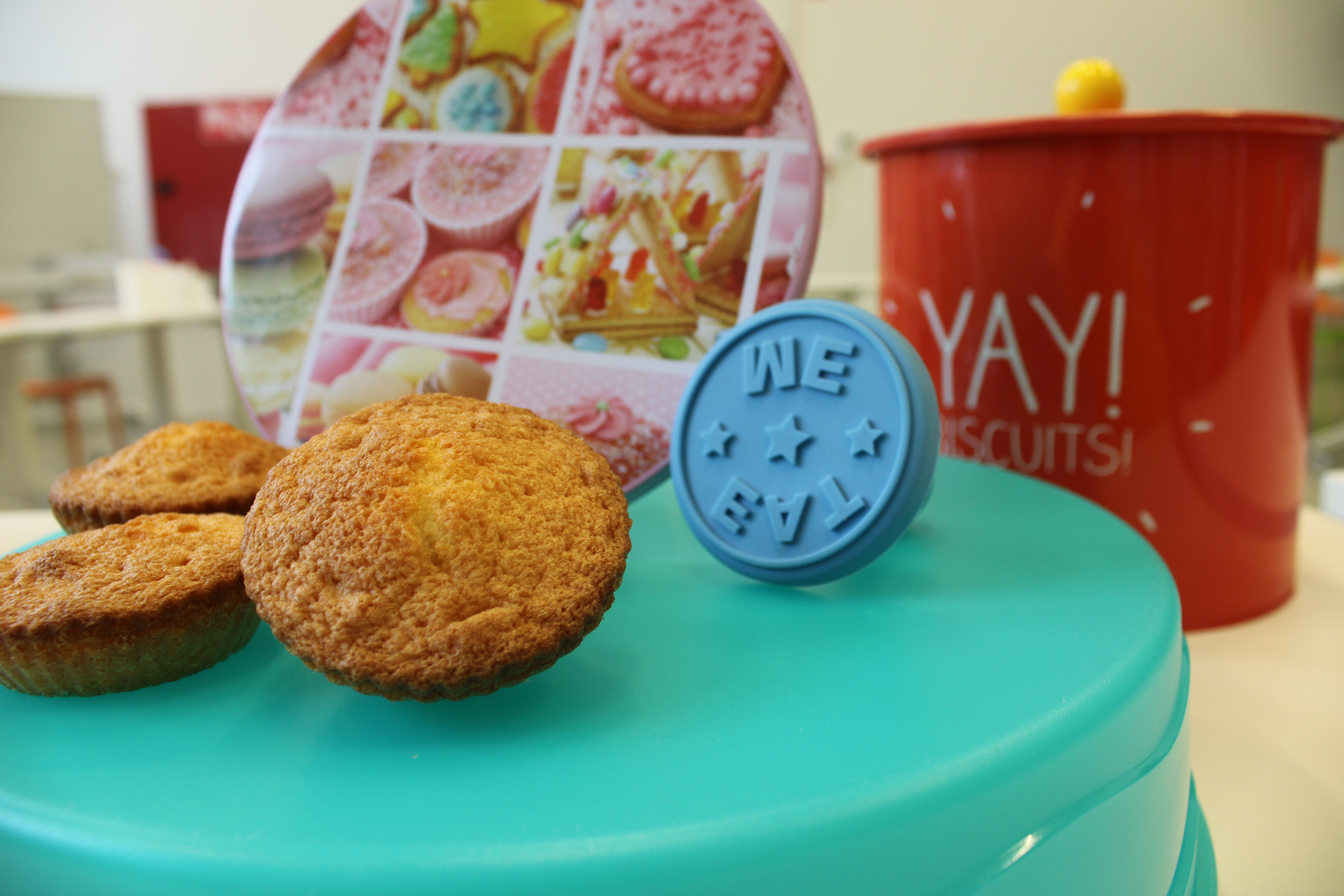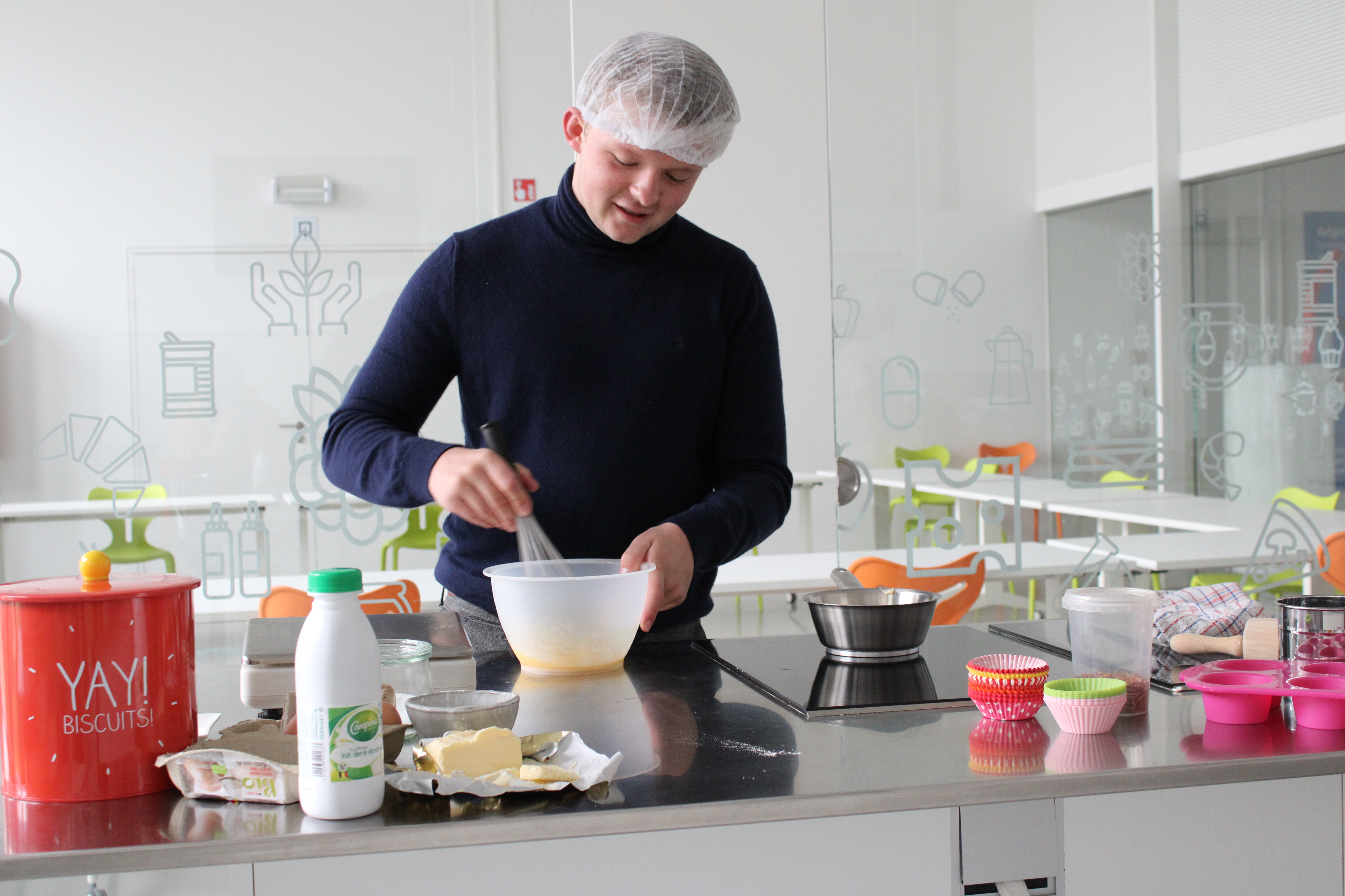 In het Huis van de Voeding (HvdV) worden per groepje 5 cakejes gebakken. Eentje zonder insectenmeel, de andere 4 met wisselende hoeveelheden.
